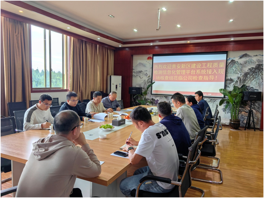 年9月26日,贵州省贵安新区住建局对公司信息化管理平台系统接入进行了现场核查,核查组根据核查要求对公司资质证书、人员配置、设备配置、检测能力、检测信息化等方面进行了现场核查,核查意见为通过。